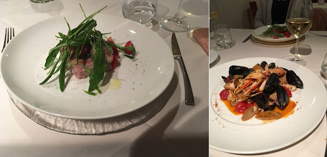 Vakarieniauti važiavome į rekomenduotą vietą. Nausikaa restoranas Martina Franca miestelyje, garsėjantis geru vietiniu maistu. Ir vėl mūsų dėmesį labiausiai patraukė jūros gėrybės – tunas ir pasta su įvairiausiu gėriu (moliuskai, aštuonkojai, kalmarai, didelės krevetės). Tunas buvo fantastiškas ir po du nemažus gabaliukus lėkštėje:) Šį kartą buvome nusprendę imti tik po vieną patiekalą ir vieną bendrą desertą, bet padavėjai, savo ruožtu, atnešė bent kelis užkandžius, kuriuos vėliau, aišku, įtraukė į sąskaitą. Desertui užsisakėme crema catalana (taip itališkai vadinasi creme brulee), porcija didelė ir labai skanu:) Šį kartą už viską, su vynu sumokėjome 75 eurus.