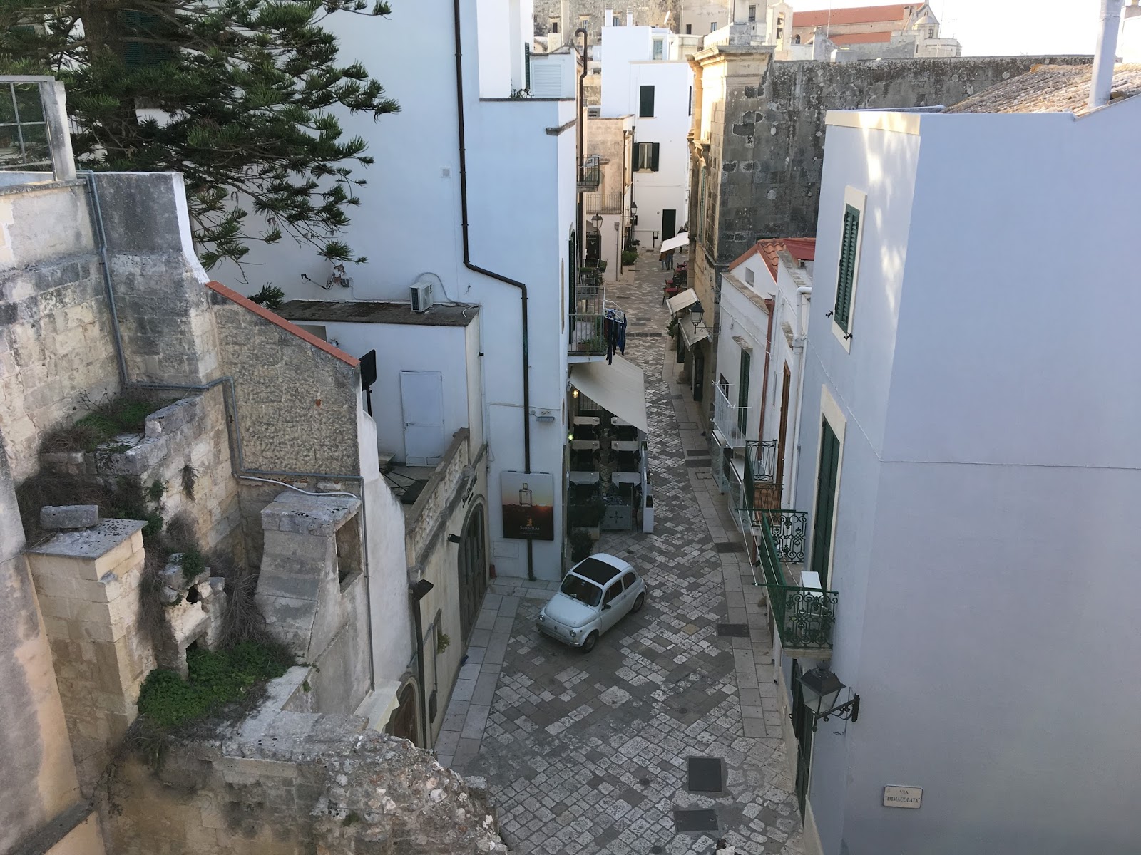 Pirmasis planuose Ostuni‘s, garsėjantis baltu senamiesčiu. Jei būtume nežinoję, kad jis tuo garsėja, būtume ir nesupratę:) Viduje jis kaip ir visi – gausu baltų namų, bet taip pat ir pilkų. Kad baltas matosi tik žiūrint iš tolo. Atvykstant ar išvykstant – ant kalno baltuoja išorinės senamiesčio sienos:)