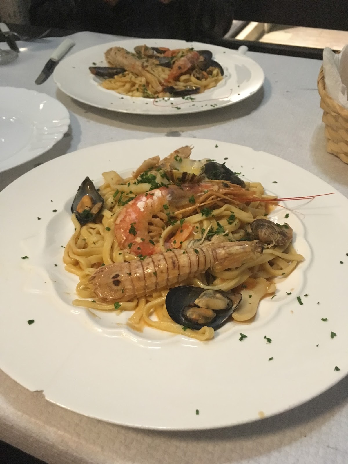 Paskutinį vakarą, susiradome piceriją, kurioje valgo vietiniai (bent taip sako google: Pizzeria Da Lino). Malkinėje krosnyje keptos picos buvo skanios, aplinka ir pateikimas paprasti, kainos draugiškos – trys sočios picos, vanduo, coca cola ir alus kainavo 25 eurus.