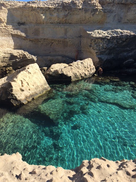 Sunku buvo atsispirti pagundai čia išsimaudyti. Vandens temperatūra kaip mūsiškam ežere šią vasarą, o spalva ir sūrumas – super! Be to, visa “vonia” buvo mūsų, prieš tai maudėsi vokiečių šeima, italai tik aikčiojo:) o čia galite pažiūrėti kas darosi šioje vietoje vasarą:)