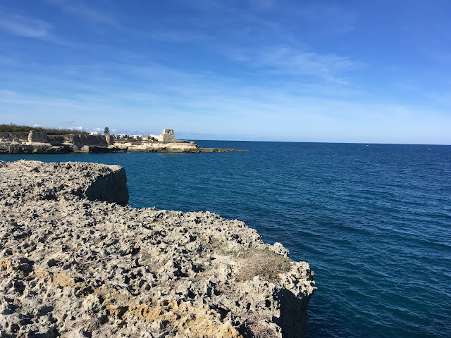 Otranto. Dar vienas siaurų gatvelių miestas ant jūros kranto. Žmonės jame išradingi – nuėjus susimokėti už kavą ir la crepe, sužinojome, kad kiekvienas pirktas dalykas kainuoja daugiau. Pavyko išsiaiškinti, kad tai “už terasą”. T. y. prie kiekvieno kavos puodelio ir prie kiekvieno blyno pridėjo po 50 cnt nes jais mėgavomės ne kavinės viduje, bet lauke:) va taip va, bet jie dirbo siesta metu, kai visa kita buvo uždaryta:)