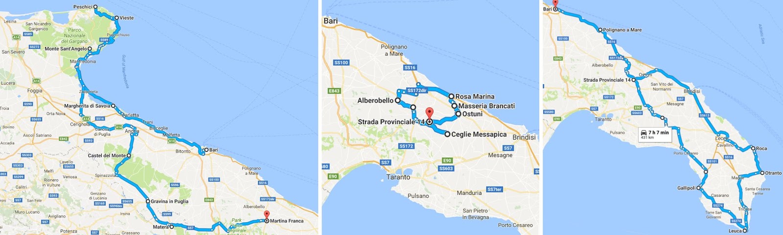 Šeimininkė rekomendavo visą sąrašą lankytinų vietų (miestukų, išsidėsčiusių 15 – 40 kilomerų nuo vietos, kurioje įsikūrėme) ir restoranėlių juose – viename kepama skaniausia pasaulyje pica (Locorotondo), kitame, patys geriausi užkandžiai, trečiame – puikiausias vietinis maistas ir t.t.