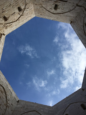Castel del Monte – unikali aštuonkampė pilis, išnyranti tolumoje. Tryliktame amžiuje ją pastatė imperatorius Frederikas II, anot audiogido, tam, kad pasididžiuotų ir pademonstruotų savo galią. Pasivaikščiojus po ją, su audiogidu sunku nesutikti – praktiškumo joje tikrai mažai – ar gyventi, ar ilsėtis turėjo būti gan nepatogu. Bet jos unikali forma, kaip užsakovas ir planavo, daro įspūdį:)) Nuo kalno, ant kurio stovi pilis, atsiveria plati panorama, puikūs vaizdai. Kiek nuvylė tai, kad nėra galimybės užlipti ant pilies stogo.. Iš tikrųjų mane, tai labai nuvylė..:)