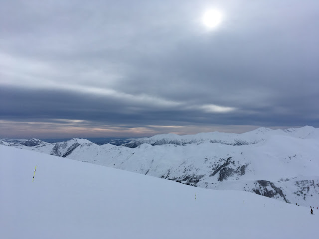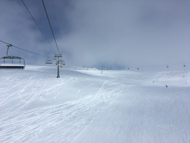 Rūkas po nakties prasisklaidęs, nors saulės nematyt. Trasos iš pat ryto ypač smagios, greitos be duobių ir sniego kupstų.. Bet žvarbu, ypač kylant į viršų jau imi galvoti apie storesnes pirštines ir pirmenybę teiki uždaram keltuvui (gondolai).