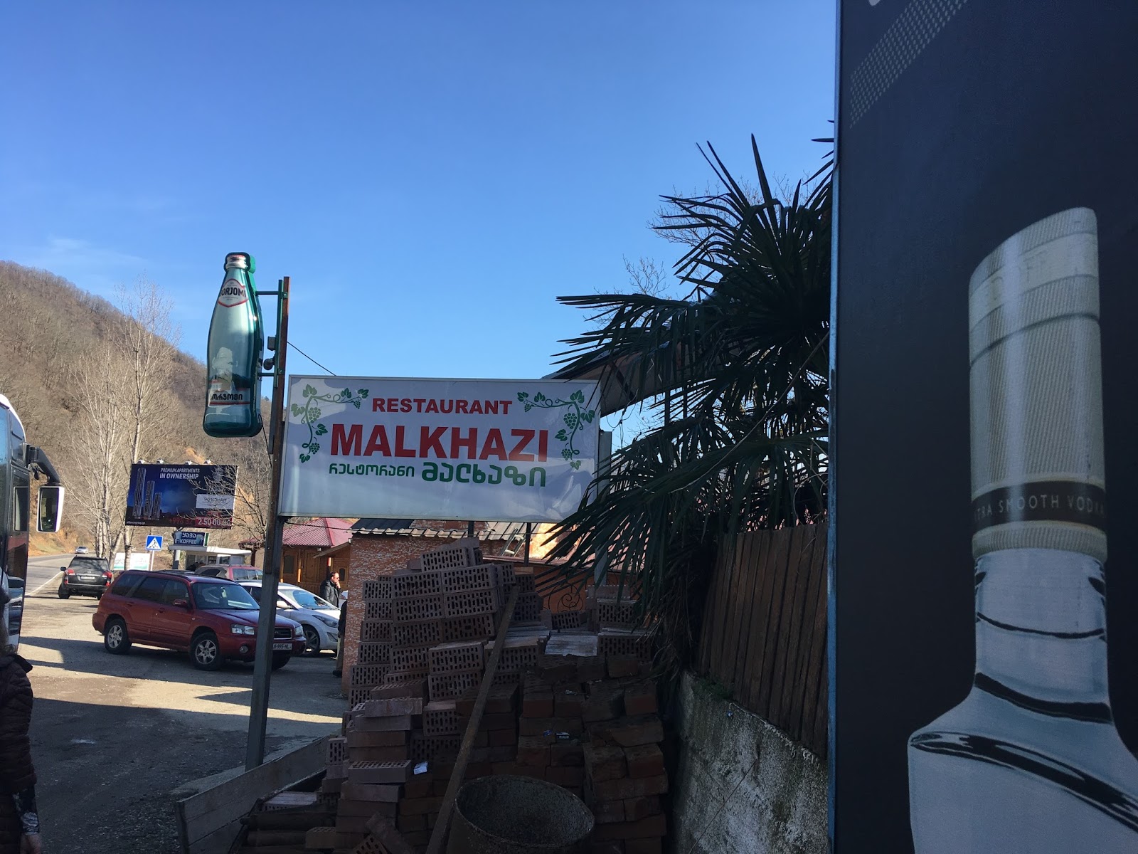 Daugiausia vakarų valgėme šeimyniniame restoranėlyje prie pat įsukimo į “Alpina” keliuką. Aplinka ten šiaip sau.. labiau valgykla, tik kad mažytė. Bet maistas naminis. Meniu nėra, ateini ir tariesi ko nori, ir ką jie tą vakarą gali pagaminti. Ką ragavome – charčio sriubą, odžachuri (mėsa su bulvėmis kepta molinime inde), šašlyką, chačapuri, chinkali, viskas patiko:)