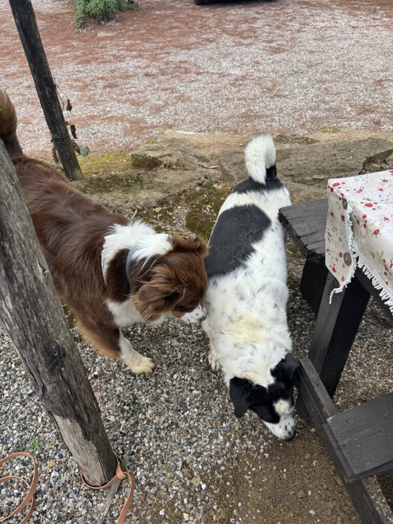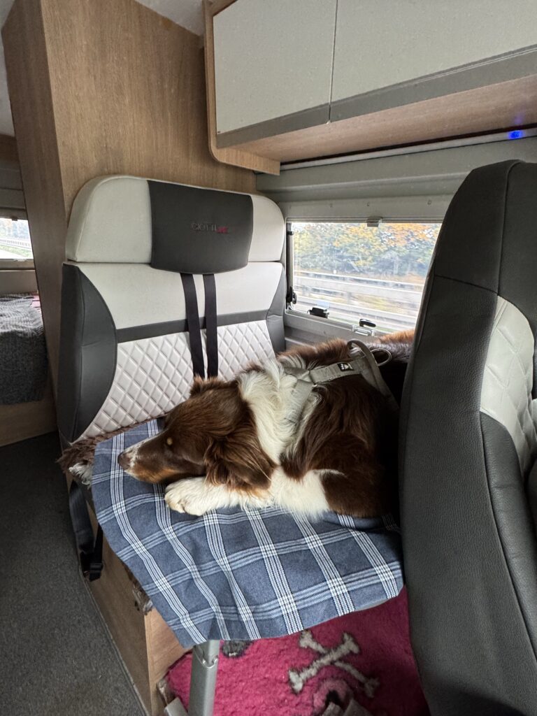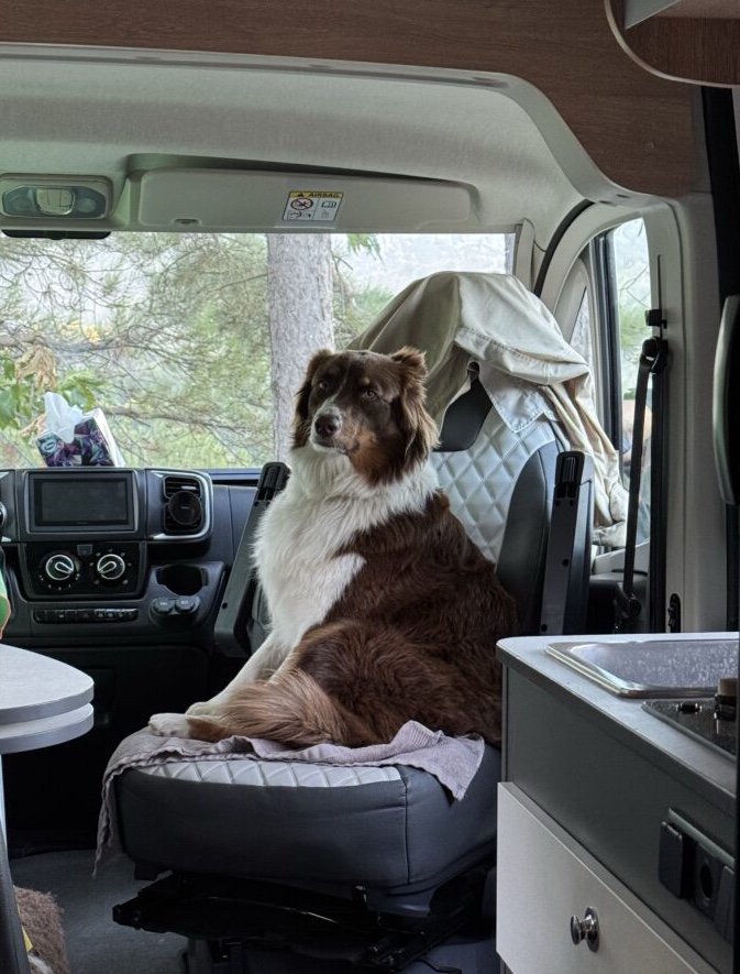 Niki panašu pavargo keliauti, darosi labiau nerami.. suprantama, tik įsikuriam vienoje vietoje, apsipranta prie tos vietos taisyklių ir bruzdesio ir jau kylam tolyn. Atvykus į naują vietą vėl nauja aplinka, nauji kvapai ir kaimynai, vėl pratinasi ir pasitinka praeivius, ypač jei su šunimis ir vaikais, amsėjimu 🤷🏻♀️🫣 Gėriuosi šeimininkais ir ju šunimis, kurie (šunys, ne šeimininkai), kartais ir po du ar net tris, ramiai guli ant kilimėlių prie kemperių, stebi aplinką 😉 Mums dar yra kur pasitempti, bet tikiu, kad užaugsime 😉 o šunų keliaujančių kartu tikrai daug, visokių ir didelių, ir mažų, ir ramių, o kartais ir nervingų 😉