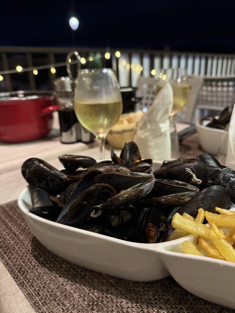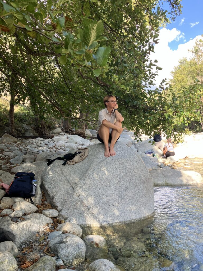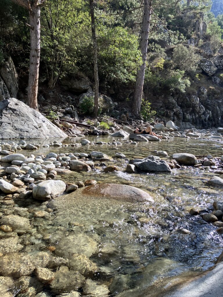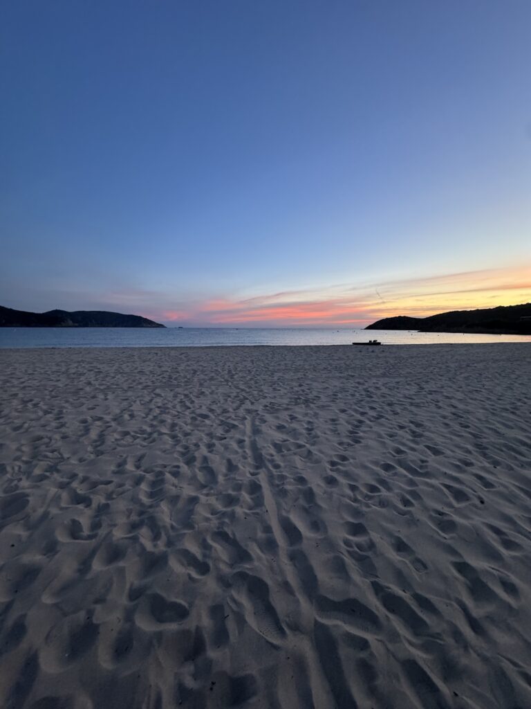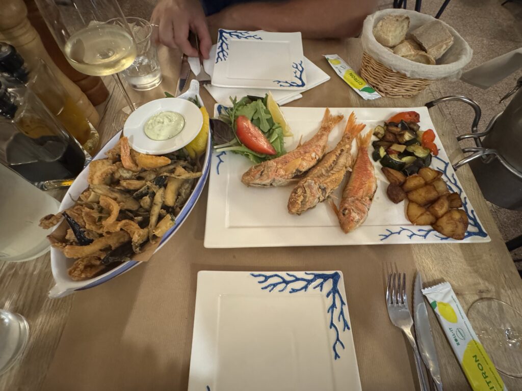 Po žygio dienos, sekančią pasidarėme poilsio – lėtas rytas, paplūdimio malonumai, žuvies restoranas paplūdimyje (🫣 žiauriai brangus.. bet grilinta žuvis su šaltu vynu buvo labai skani), ir vakarop pasivaikščiojimas po mielą nuostabios gamtos apsuptą Piana miestelį.