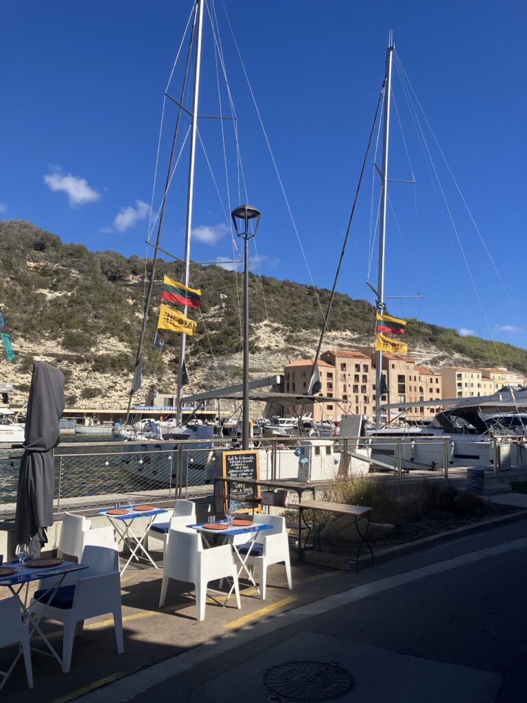 Bonifacio pirmą ir vienintelį kartą per kelionę sutikom, matėm, girdėjom lietuvių, bet tiek daug vienoje vietoje vienu metu 😉 didelis būrys buvo pusdieniui atplukdytas į turą po miestą iš Sardinijos, juos buvo lengva atskirti nes visi su vienodomis racijomis 😉 dalis, matyt kaip ir mes – atkeliavę sausuma, o dar kiti – jachtomis, praeinant uoste išvydome net trys jachtas su lietuviškomis vėliavomis..:)