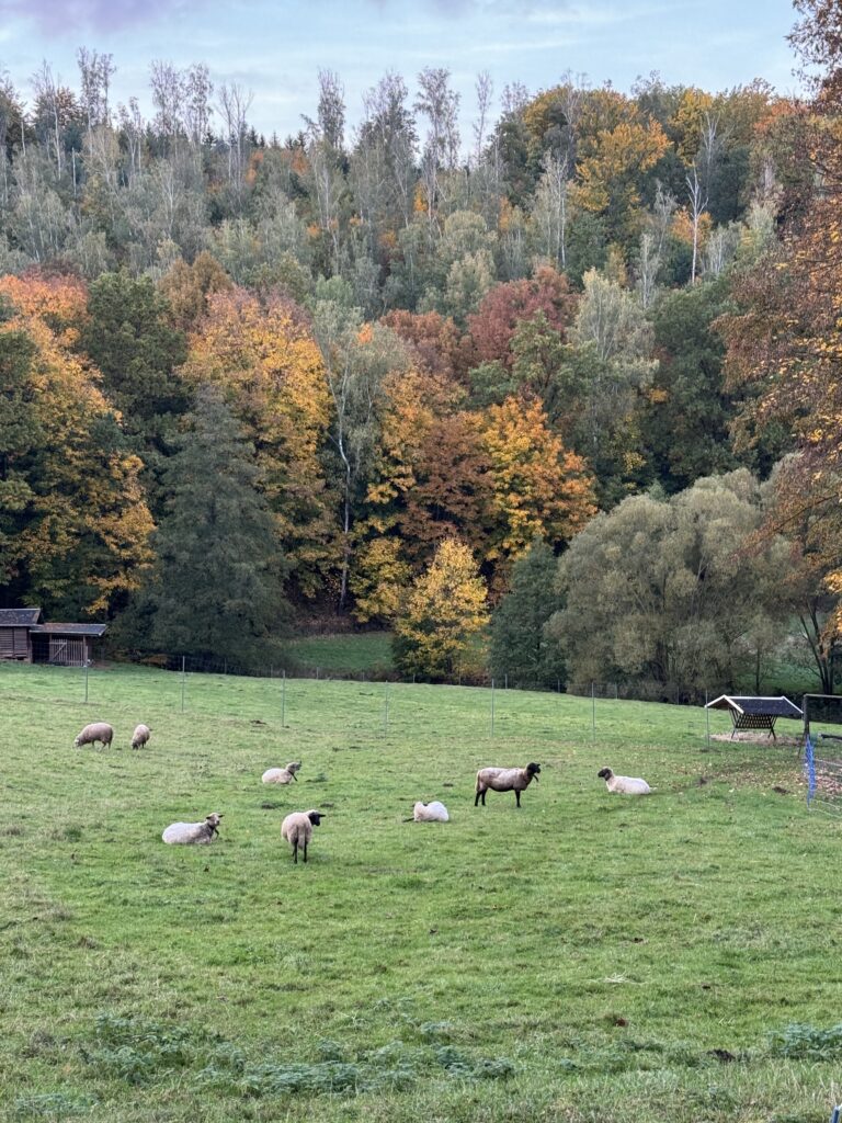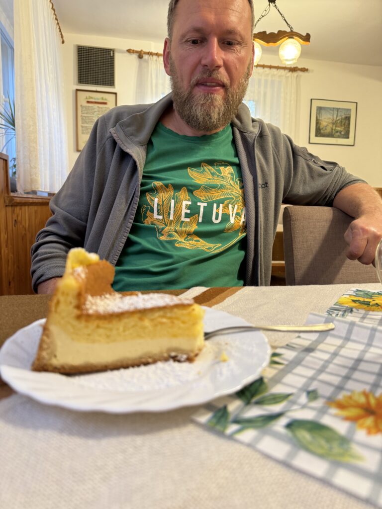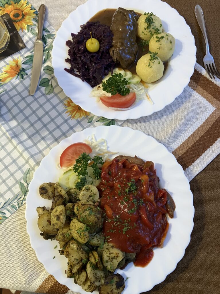 Na, o jei pakeliui namo per Rytų Vokietiją norėsis atsikvėpti ir pavalgyti tikro vokiško maisto, kas mums ir nutiko😉, galite išbandyti svečių namus Waldhaus Kalkbrüche / Kaltofen (https://xn--waldhaus-kalkbrche-06b.de/). Jie yra ūkyje, gamtos apsuptyje, bet tik už kelių km nuo greitkelio, likus maždaug 40 km iki Drezdeno. Pasukome link jų nors ir abejojome, kad pirmadienio vakarą dirbs (kelionėje įsitikinom, kad ką Google sako dar nebūtinai teisinga). Bet jie dirbo ir skaniai bei sočiai primaitino, dabar užteks jėgų dar 3-4 val kelionės 🙂