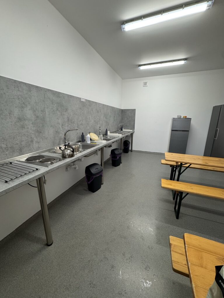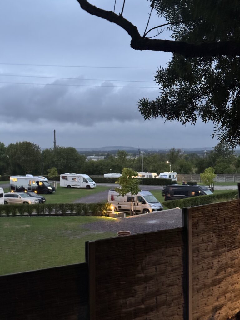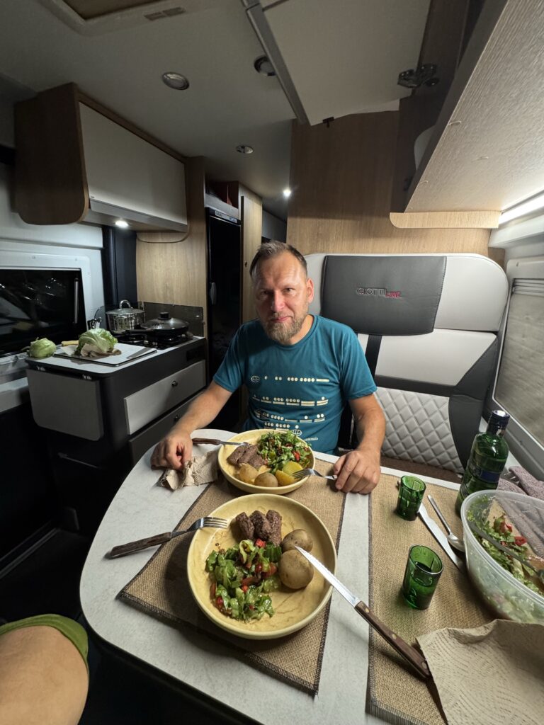 Vakaras. Apsistojome kempinge Čekijos/ Austrijos pasienyje Mikulov miestelyje – camping Mikulov. Labai gera vieta – modernus erdvus kempingas, visi būtini dalykai kemperių aptarnavimui, erdvūs švarūs tualetai, dušai, netgi virtuvė – valgomasis po stogu. Jaukus ir pats Mikulov miestelis. Deja viską daugiausia stebėjome pro langą nes šaltas oras ir lietus visai neviliojo į lauką, tik tiek kiek būtina pasivaikščioti su Niki ir nubėgti iki tualeto 🙂 Tad pavakarieniavome šiltai kemperyje ir miegoti 😉 O ryte, dušas, pusryčiai, susitvarkyti ir vėl į kelią.