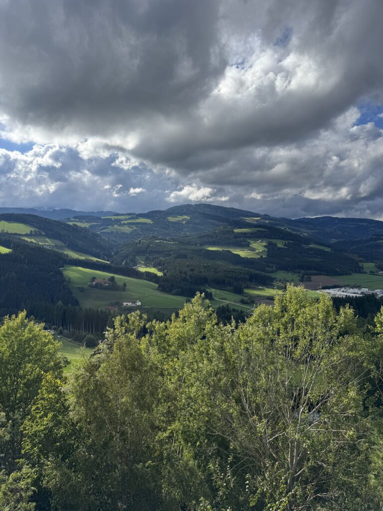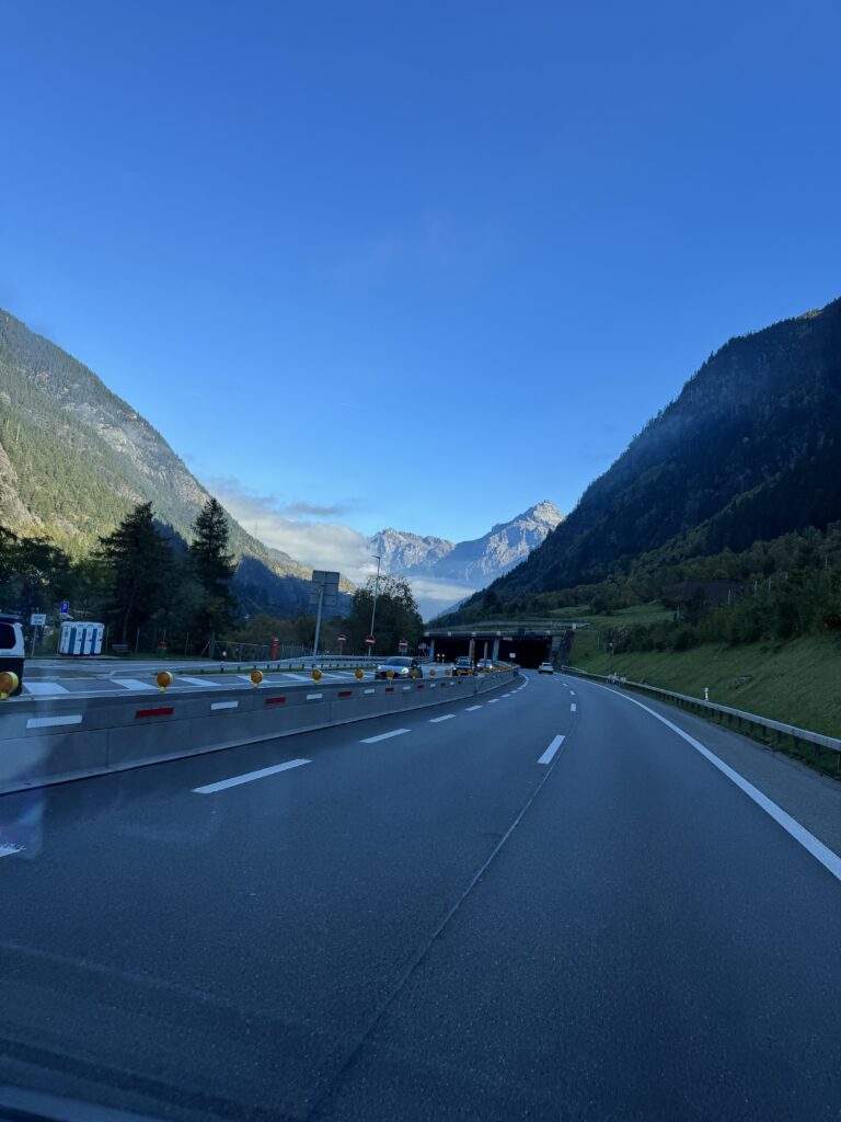 Trečia diena kelionė per Austriją. Popietę pasiekėm Alpių priekalnes, vaizdai vis gražesni, tik oras ir toliau šaltokas, vėjuotas ir su lietumi. Bet karts nuo karto ir dangus pasimato 🙂