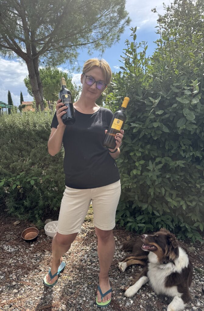 Ūkyje maloniai šildanti saulė ir laisvė nuo pavadžio Niki’ei, bent kol kas kol mes čia beveik vieni ..:) kol užsiregistravau ir šio ūkio vyno įsigijau 🙂
