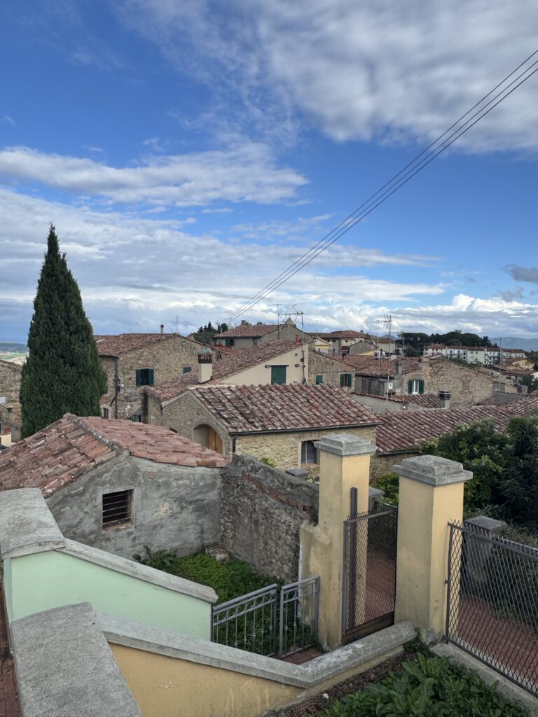 Po pietų išėjome pasivaikščioti po apylinkes. Pasirodo buvome visai netoli miestelio Montescudaio. Jis, kaip ir dauguma Toskanoje, ant kalvos, centre jaukus senas senamiestis, puikiai tiko pavakario pasivaikščiojimui 🙂