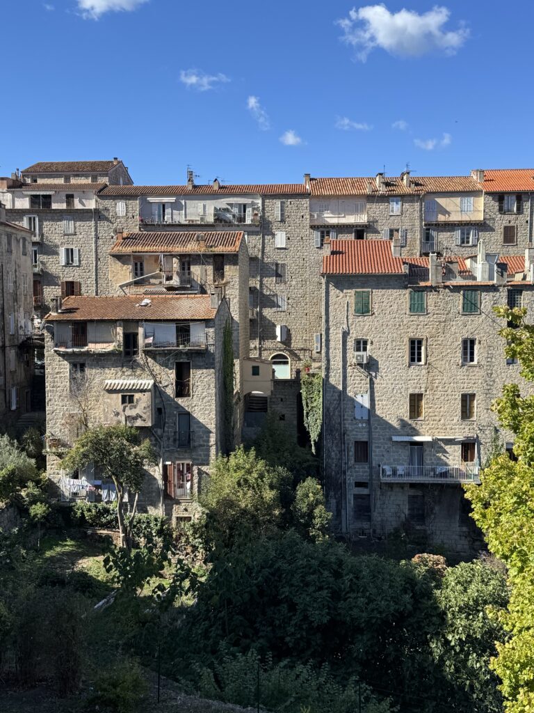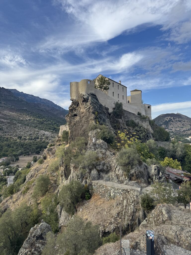 Septinta kelionės diena, 1-ma pilna diena Korsikoje. Nepasiliekame nei šiame kempinge, nei rytinėje pakrantėje, sukame į salos gilumą, link kalnuose įsikūrusios senosios Korsikos sostinės, universitetinio miestelio Corte.