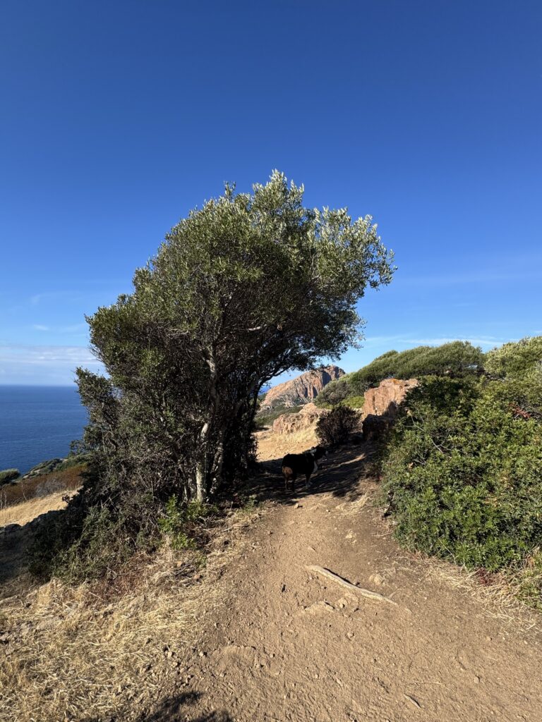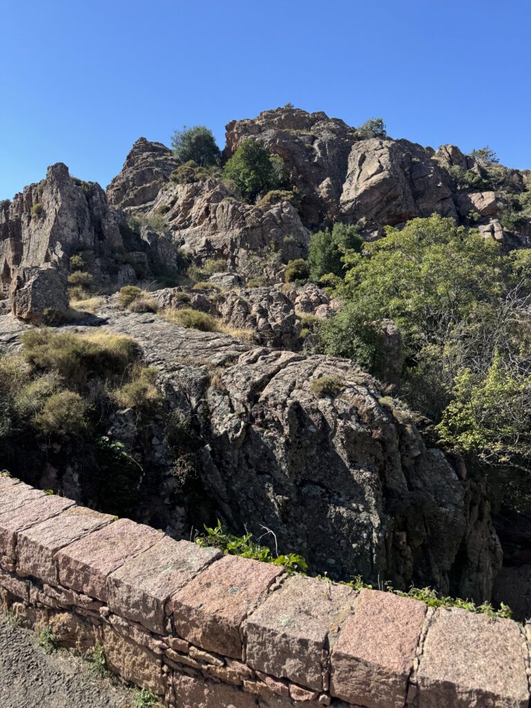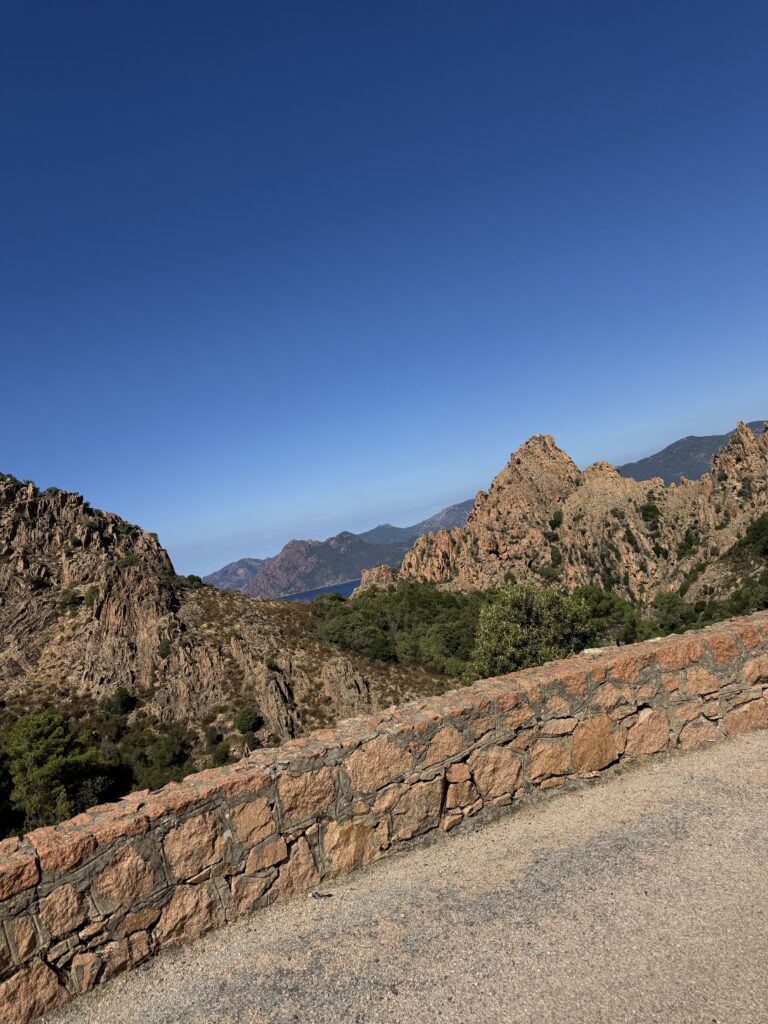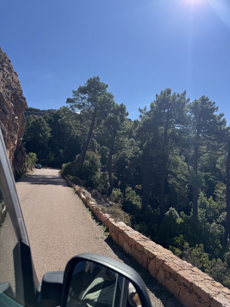 Pakeliui stabtelėjome pasivaikščioti tarp Porto ir Piana. Maršrutas (apie 3o min į vieną pusę) vadinasi Tête du Chien, pradžioje eina pavėsingu miško taku, vėliau akmenų laiptais. Jo gale įspūdingo grožio uolos ir vaizdas į Porto įlanką. Čia jau vėl labai maloniai šilta, apie 22 laipsnius 🙂