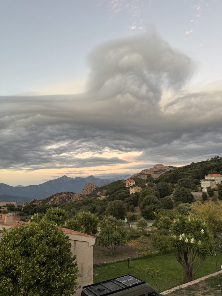 Įdomi Korsikos (ir kitų kur apsistojome pakeliui) kempingų savybė, kad vos tik sutemsta čia tampa labai tylu.. pvz šitam kur dabar esame tik girdisi cikados.. apie 9 val. toks jausmas kad dauguma jau miega, kai kas tyliai kalbasi prie staliukų, kai kas matyt kažką veikia automobilių viduje.. bet lauke tylu tylu ..:) nežinau ar tai mūsu pasirinktų kempingų specifika, ar vokiečiai tokie tylūs 🙂 nes 90 proc kempingautojų automobilių su vokiškais numeriais.. kažkiek yra prancūziškas ir pasitaiko vienas kitas kitoks – austriškas, šveicariškas, britiškas, vengriškas, … lietuviško nematėme (kol kas) 🤷🏻♀️