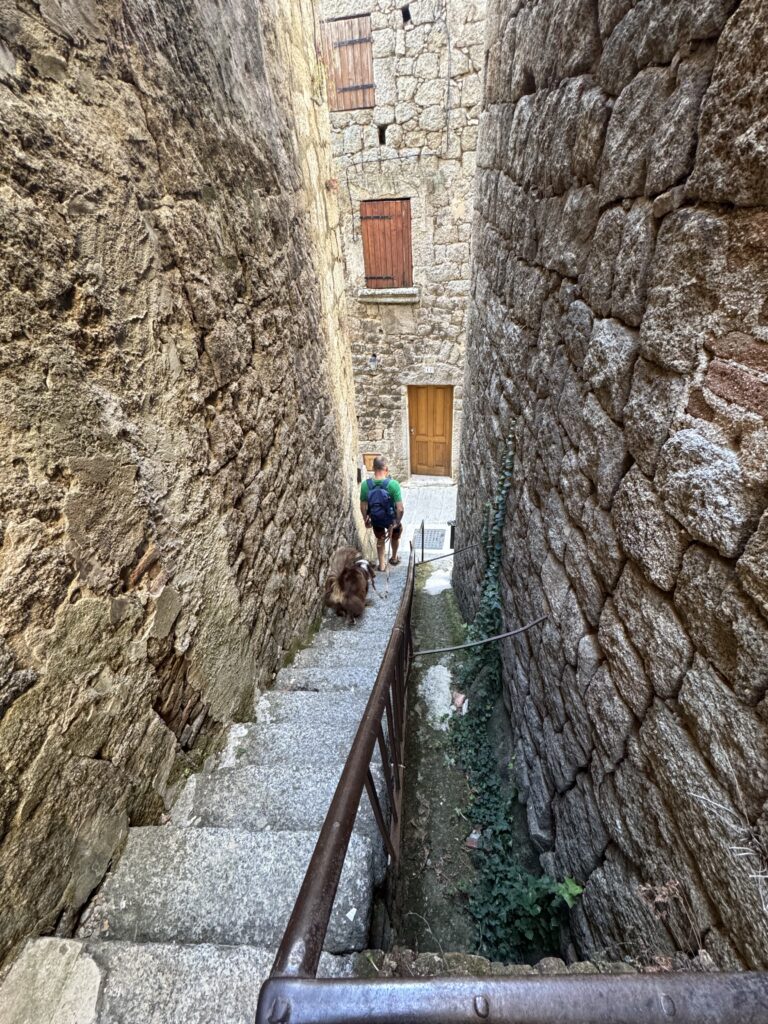 13/8 keliones/Korsikos diena. Vykstame į labiausiai korsikietišku vadinamą seną ir vaizdingą, kalnuose ant uolų įsikūrusį Sartene miestelį-tvirtovę. Ilgą istoriją turintis miestas, atrodo buvo pasiruošęs rimtai gintis. Dabar gyvas ir pilnas lankytojų;) Įdomūs jo kai kurie architektūriniai sprendimai , ypač prie senų namų sienų, matyt jau šiais laikais “priklijuoti” tualeto kambarėliai 😉 beje mieste, restoranėliuose tualetų niekur nėra, išskyrus labiausiai turistinius prie centrinės aikštės..