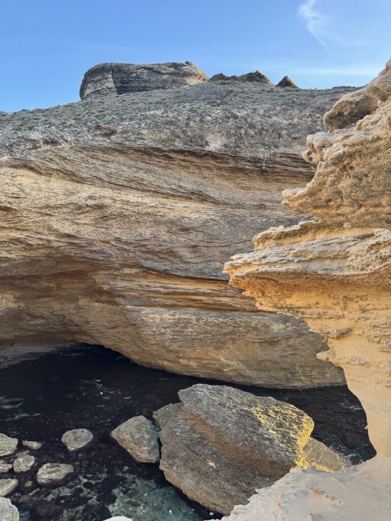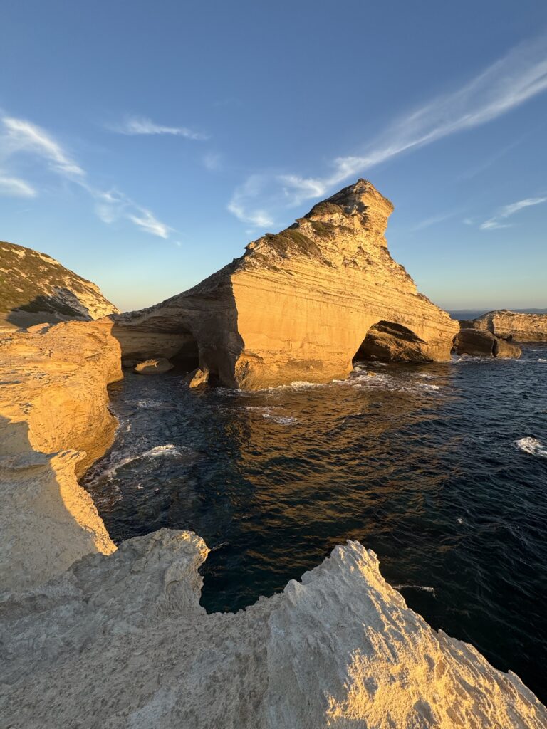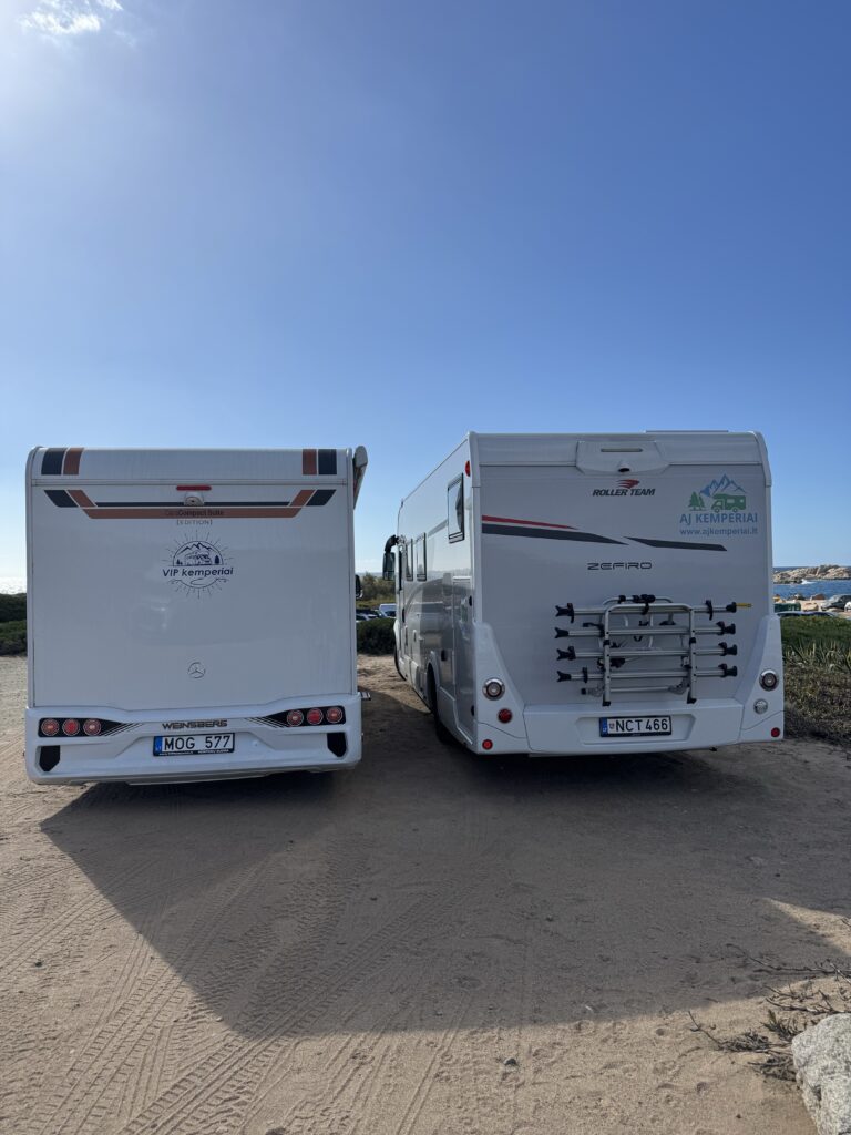 Aplankę Sartene, leidžiamės link Bonifacio – miesto ant baltų kalkakmenio uolų ir piečiausio Korsikos taško. Pakeliui, sukame į netoli Bonifacio esantį pliažą, šalia jo puikuojasi du lietuviški kemperiai, vienas su “AJ kemperiai” logotipu, kaip ir mūsiškis..:) sustojame šalia ir keliaujam maudytis 🙂