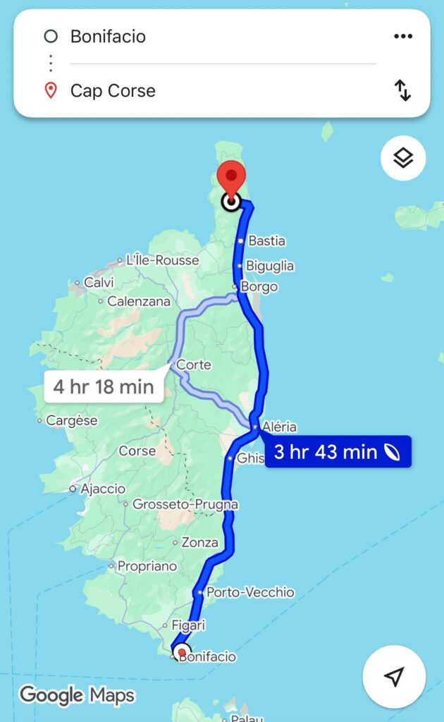 Atsigrožėję Bonifacio, nusprendėme iš paties pietinio salos taško, dar tą pačią dieną atsirasti pačioje šiaurėje – pirštelyje pavadinimu Cap Corsa ir paskutines dienas praleisti ten.