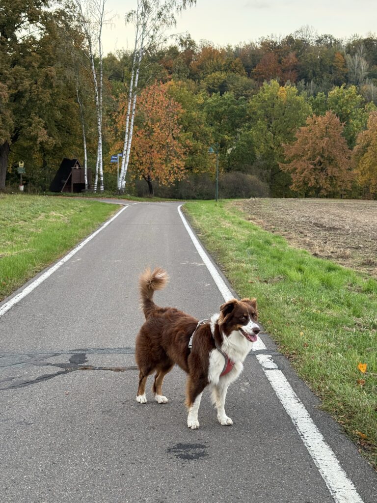 Su Niki kelionė įgauna kitas spalvas, dažniau reik sustoti, pageidautina ten kur galima pasivaikščioti. Tai užsukome į nedidelį miestelį šalia greitkelio kuriame esanti užtvanka apjuostas pėsčiųjų ir dviračių taku, šalia miškelis.. gavosi smagus virš valandos pasivaikščiojimas. Oras gražus, saulėta, tik gana vėsu, ypač pavėsyje ir stipriai vėjuota. Panašu, kad laukia šaltas 🥶 vakaras Čekijoje.